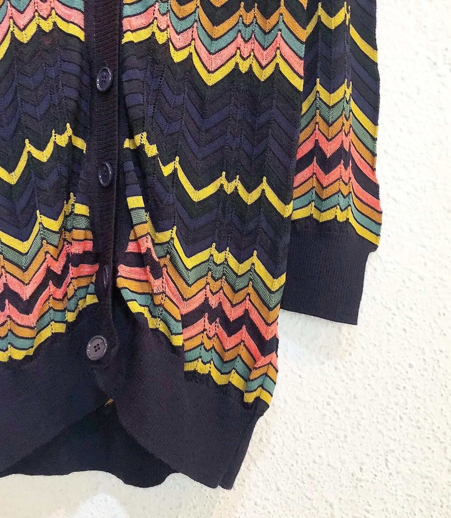 ミッソーニのこういったパターンは、クセのある配色だと着にくいモノも多いので、ネイビーベースに綺麗な挿色の配色はとてもオススメです。