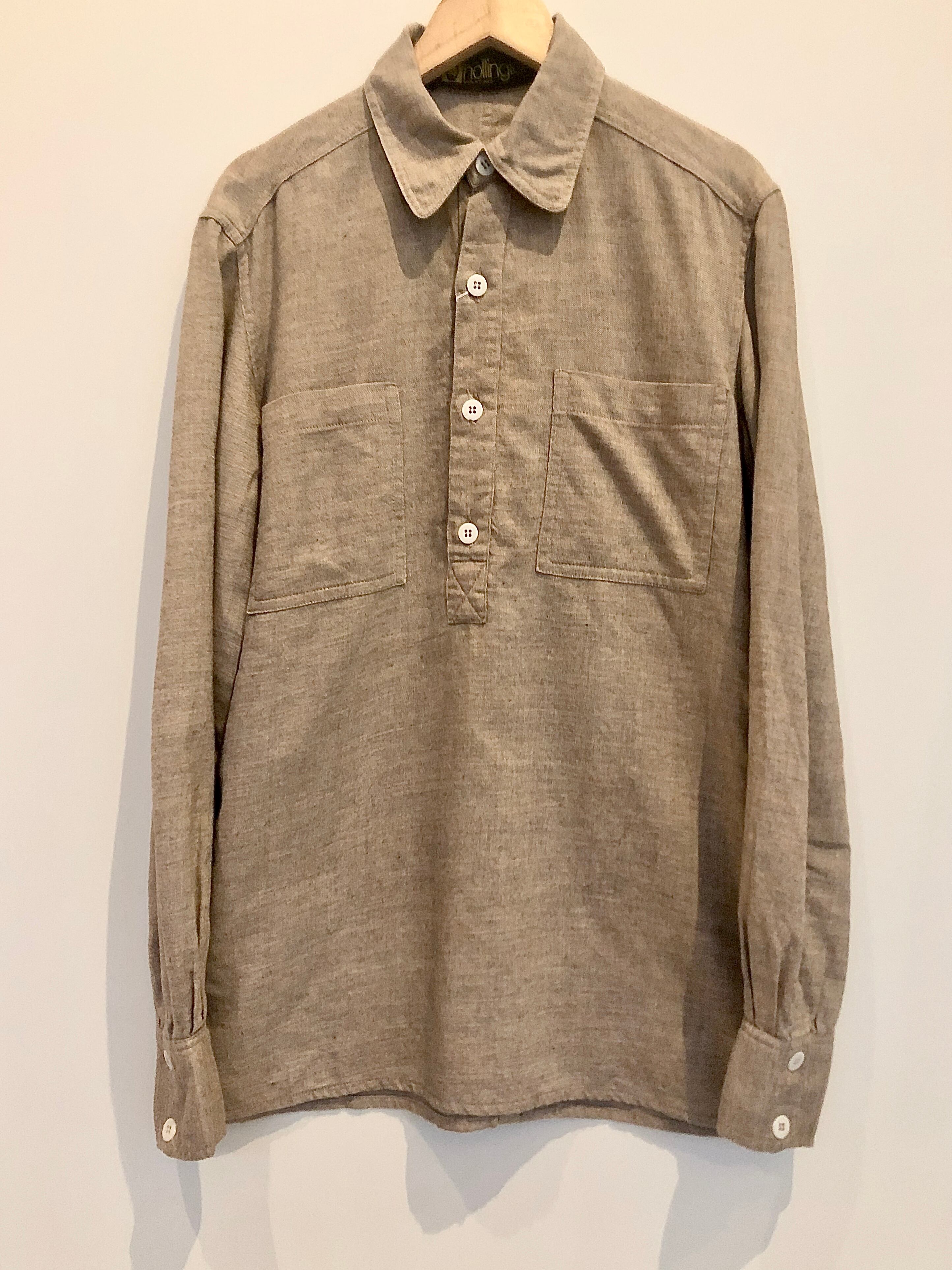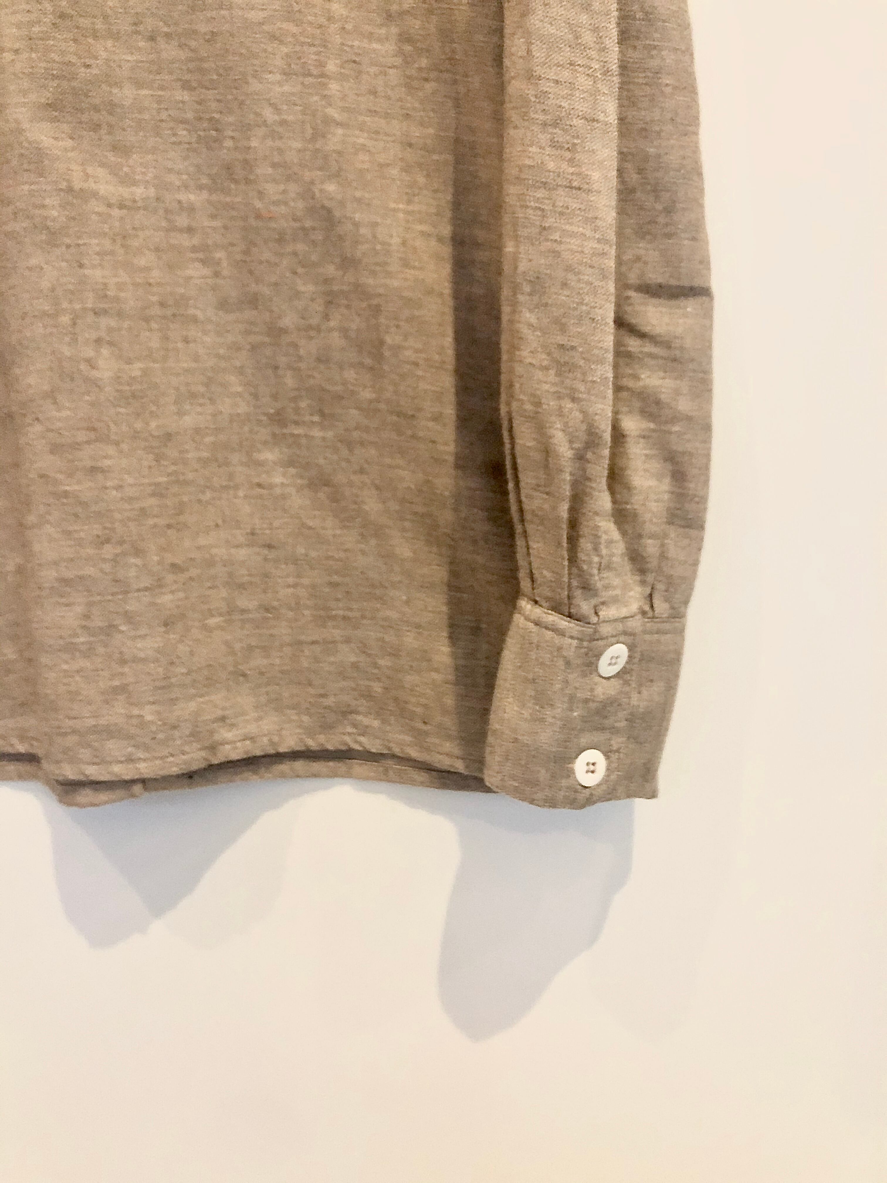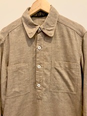 長袖ポロのようなデザインですが、生地はシャツ地になります。ラウンド気味の襟も綺麗ですね。