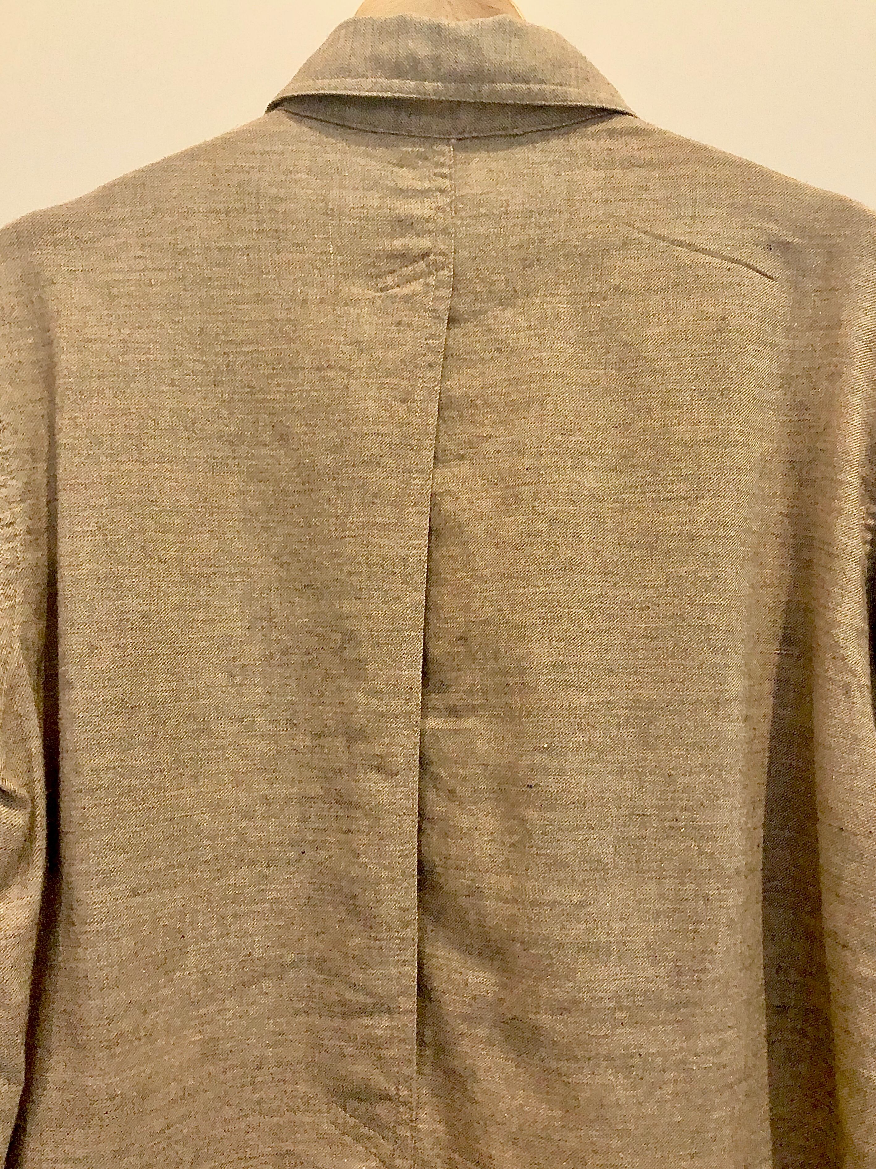 背中の中央に大きなアクションプリーツが入っており、丁寧な作りがうかがえます。