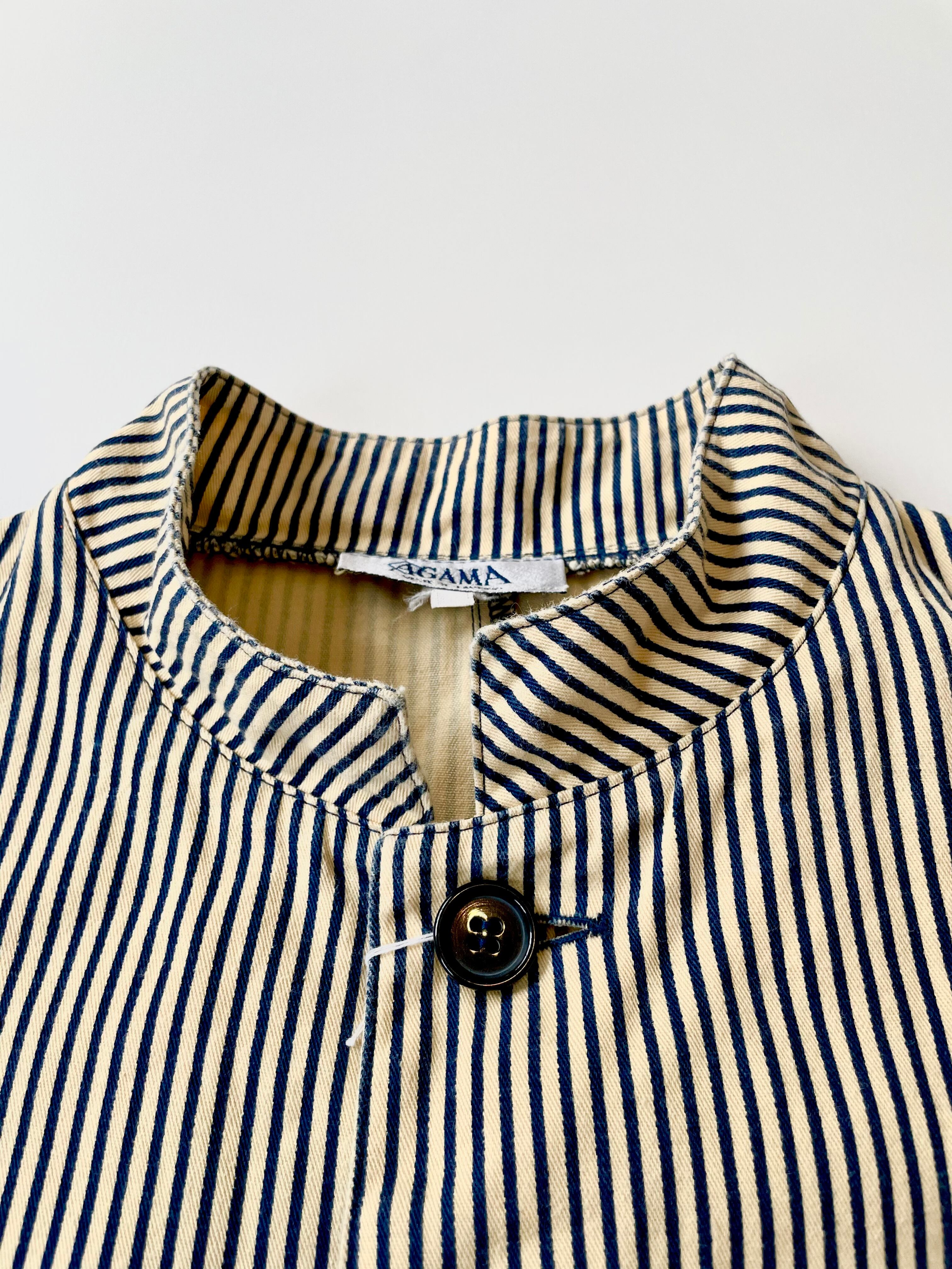 いわゆる給仕さん用のジャケット。ヨーロッパモノで、この手の白紺や白黒は見かけますが黄紺は珍しいのではないでしょうか?