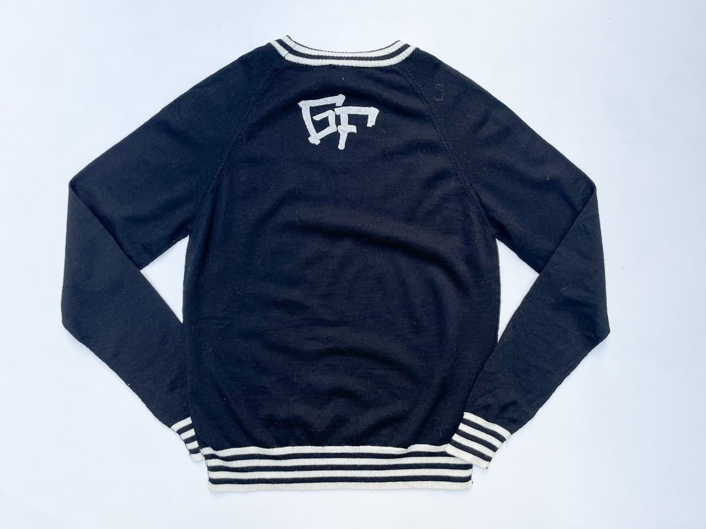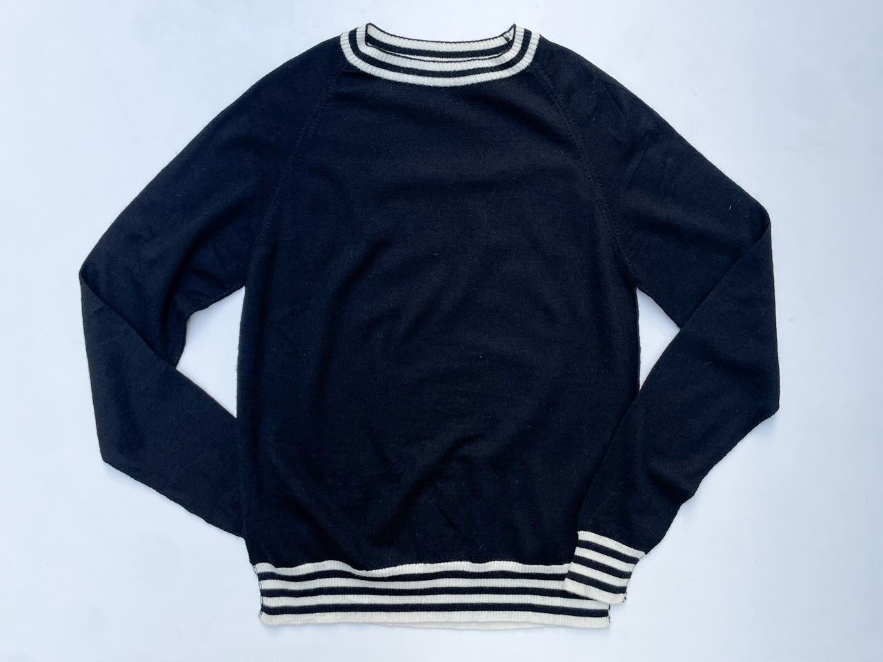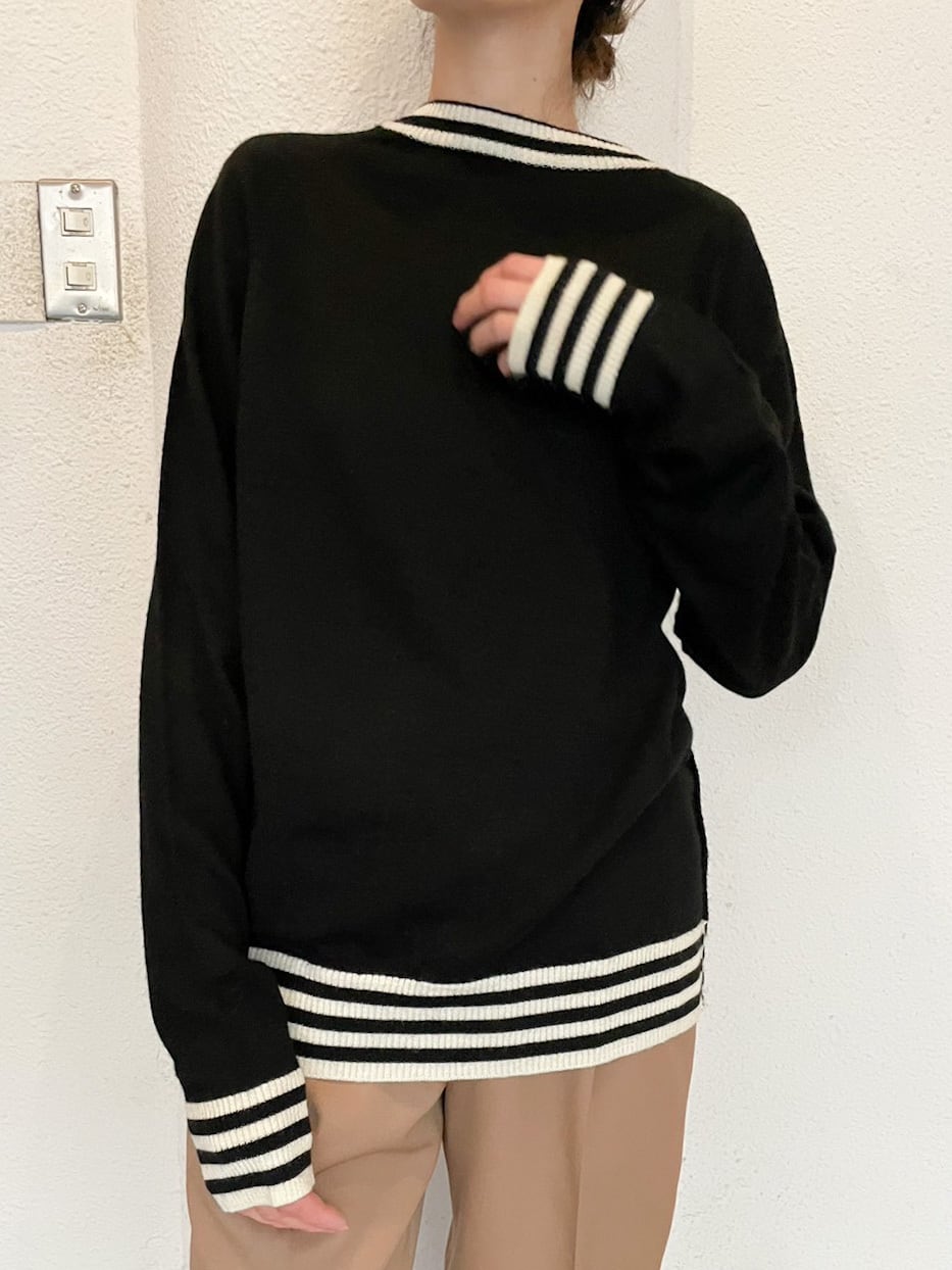 チルデンニットを丸首にしてモードにしたようなデザイン。