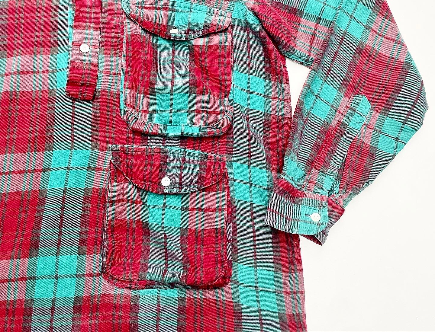 胸ポケットが縦に二つ配置されており、どちらもマチありでフラップ付き。