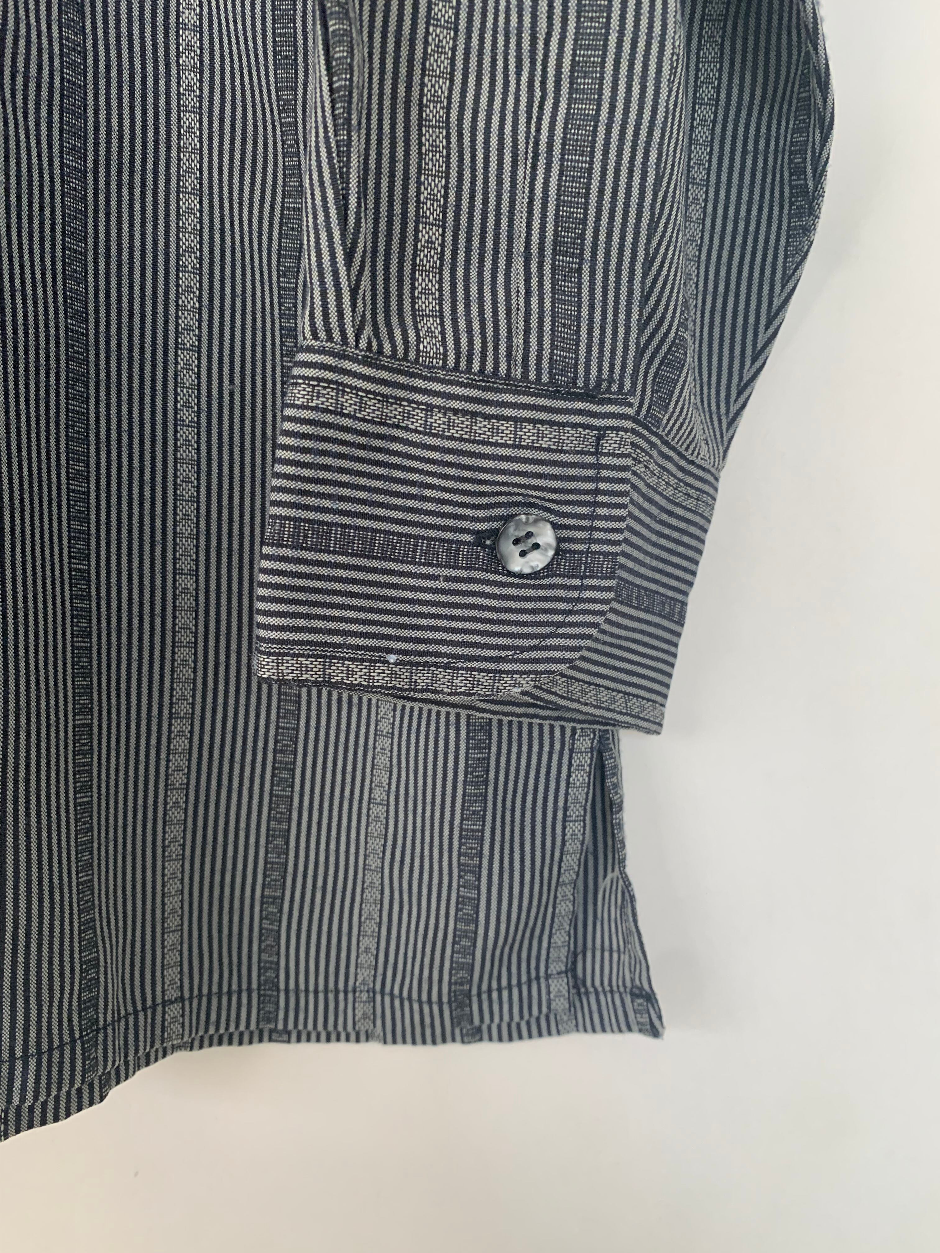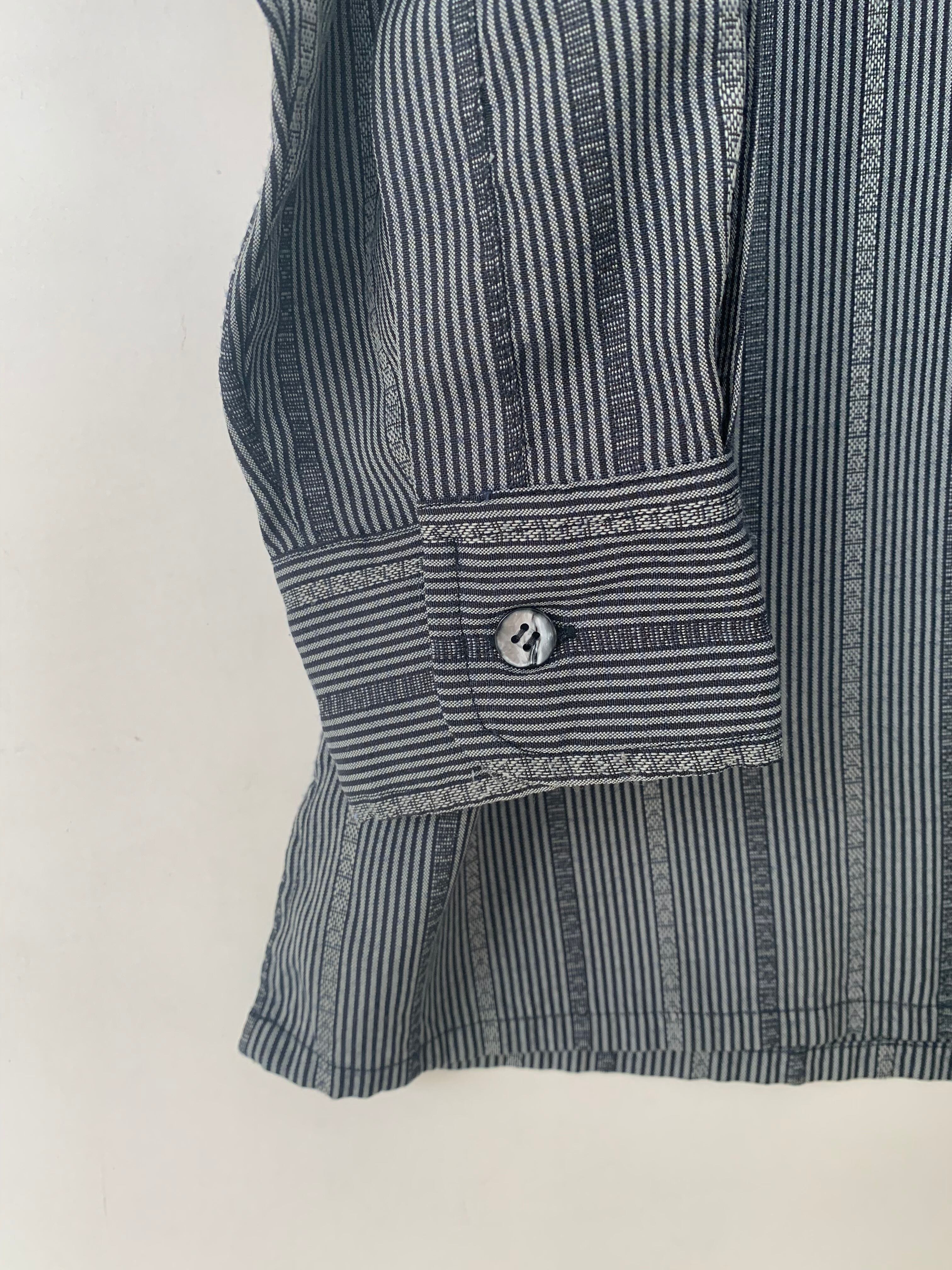 ランダムストライプで、生地も光の当たり方でグレーやグリーンぽくなる色気のある素材。